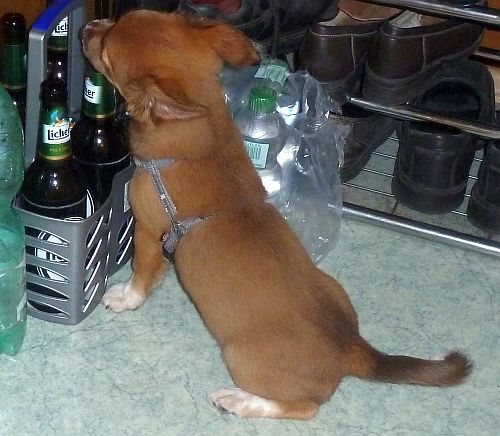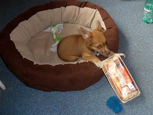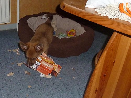 Fütterung: 1/4 Tagesration Trockenfutter, 200 g Rinti oder Bozita, und nebenbei