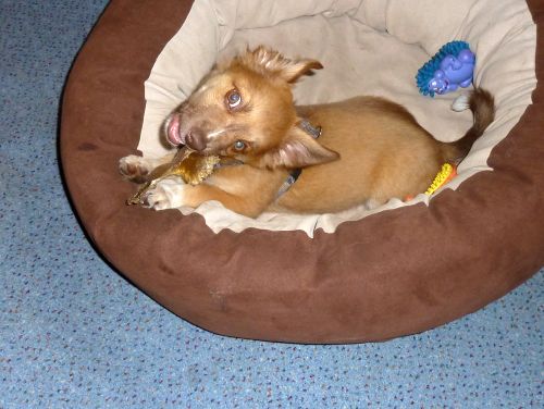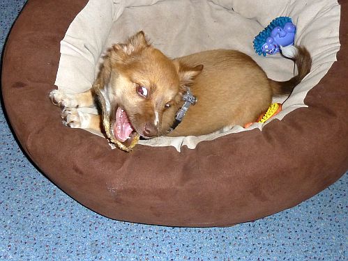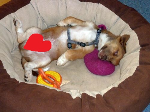 und selig geschlafen. Braver Hund. Ich glaub, der braucht dringend ein Kopfkissen.