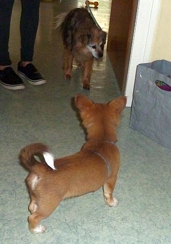 Erst war er ein wenig feige und hat sie verbellt und sich brummend zwischen