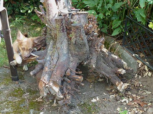 Heimat. Er wird immer kecker und weitere Barrikaden an der Gartentreppe sind
