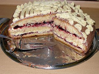 jeweils Marmelade und Buttercreme auf jeden Boden draufstreichen, wieder