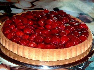Erkalteten Boden mit Obst belegen, Tortenguss drüber, fertig