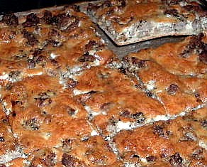 1 Eßl. Margarine - Hefeteig machen und auf dem Blech gehen lassen, Rand machen