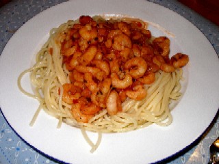 Riesengarnelen von meinem Lieblingsdiscounter in Knoblauchbutter (ich nehm selbstgemachte eingefrorene Kräuter-Knobi-Butter) kurz in der Pfanne braten. Dazu gibts Franzosenbrot und und ein paar Tomaten.