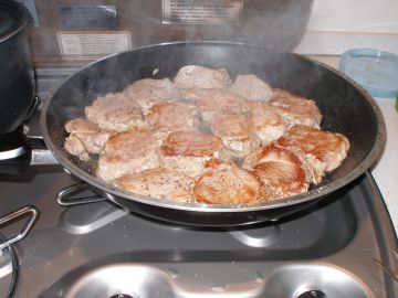 mit Sahnesoße (s.o.) mit Spätzle, gekocht mit Würstchengulaschfix