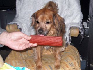 Aber hier noch schnell ein Bild von unserem Rüpel, der kläglich an seinem Weihnachtsknochen scheitert. Obwohl er sonst eine recht große Klappe hat, kriegt er das Ding nicht zwischen die Zähne.