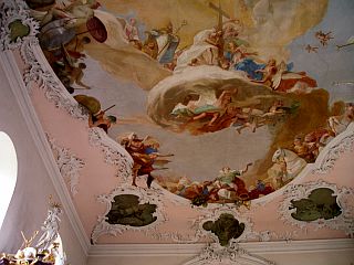 In der Wallfahrtskirche Ipthausen hängen Beine aus dem Deckengemälde