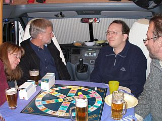 Nach dem Abendessen bei Wiebkes im Womo vertreiben wir uns die Zeit mit ein
