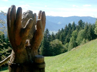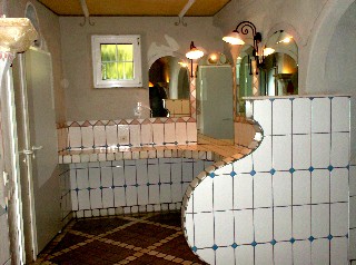 Ist wahrscheinlich nur Glas, aber macht was her. Das Bauernbadl wird gerade noch gebaut, und zwar wird dazu ein uraltes Bauernhaus - aus der Umgebung importiert - hier gerade erst wieder aufgebaut, was uns aber nix nützt, und wir haben einen weiten Weg ins Waldbad. Den Wellness- und Beauty-Bereich werde ich wohl nicht knipsen, denn der ist anderen Geldbeuteln vorbehalten. Aber das Schwimmbad soll toll sein, haben uns MichaelWs Eltern gerade erzählt, und da haben wir ja zweimal Eintritt frei und werdens auch nutzen.