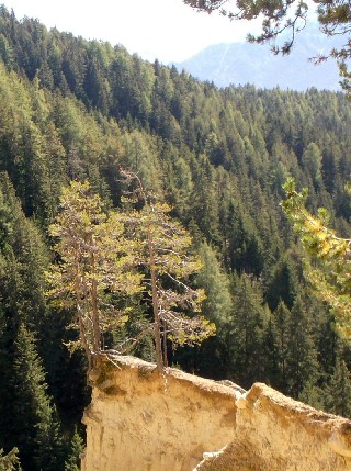 Der Radwanderer hat scheinbar überlebt, denn er ist weg. Unsre extrem sportliche Nachbarn lassen heute die Wanderschuhe drin und steigen aufs Bike. Uns zieht es bei wolkenlosem Himmel weiter Richtung Misurina-See, oder vielleicht auch Antholz. Kurz hinter Bruneck sehen wir in Percha einen Supermarkt und decken uns mit einer Steige Schwechater Schaumrollen ein, denn das vorgestern gekaufte Birra Uni war leider alkoholfrei. Außerdem gibts hier Südtiroler Williams, der muss natürlich auch mit. Direkt gegenüber entdecken wir ein Hinweisschild zu den Erdpyramiden bei Oberwielen, und somit steht unser heutiges Ziel fest, denn die ganze Zeit gingen mir die verpassten Pyramiden vom Ritten nicht aus dem Kopf.