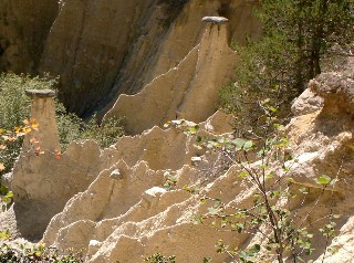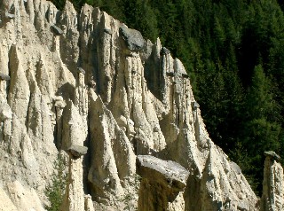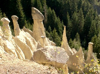 Oben am Hang sind die Pyramiden noch nicht ganz ausgeprägt, während weiter unten freistehende zu sehen sind.