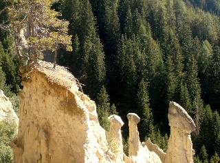 Noch ein paar Stufen und wir sehen sie - die ursprünglich durch einen Erdrutsch entstandenen Gebilde, die lediglich durch den dicken Stein obendrauf vor weiterer Ausspülung geschützt sind.
