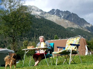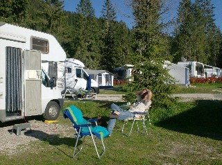 Wer Wert auf Stil und Komfort vieler Sterne legt, ist hier genau richtig. Man muss es mal erlebt haben, denk ich. Der Platz ist recht voll, also gibts genügend, die diesen Luxus lieben. Alles ist vertreten, ein Globecar-Treffen, jede Menge Bussis, aber auch Phoenix mit SLK-Cabrio aufm Hänger, und natürlich auch unsre Sorte. Per Lautsprecheransage werden wir auf den morgigen Almabtrieb hingewiesen, und auch weitere Aktivitäten wie Kletterkurs und Wanderungen werden angekündigt.