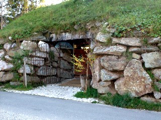 Das ist der Vorraum zur Dusche im Waldbad. Das Kristallbad liegt unter einem Erdhügel,
