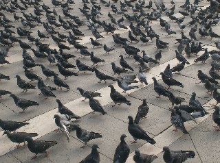 Bruno hat seinen Spaß an den Tauben, denn endlich darf er sie ungeniert jagen. Und die Tauben mögen das, denn einheimische Kinder mit dem Fahrrad tuns ständig. Pervers, was hier getrieben wird. Aber die Viehcher gehören zu Venedig, und schon in meiner Kindheit wurde Taubenfutter verkauft, und auch unsre Kinder durften die Vögel auf ihren Armen landen lassen. Also was wäre Venedig ohne sie?