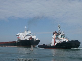 Schlepper schaffen dicke Pötte in den Hafen, und