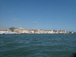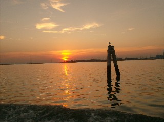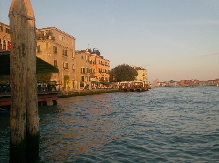 Außerdem stehen wir ganz vorn an der Lagune und haben einen unverbaubaren Blick auf Venedig. Es ist herrlich warm, also schnell raus aus den dicken Klamotten, 3-Tage-Boots-Karte für 20 € p.P. gekauft, und kurz drauf legen wir in Venedig an.