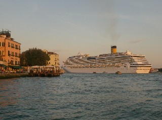 Venedig und die vorbeifahrenden Schiffe. Gegen 16:00 dürfte Venedig touristenarm
