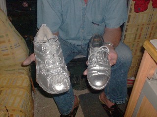 Boah, unsre bequemsten Schuhe haben sie - einen linken und einen rechten - versilbert. Und ein Sprüchlein drauf.
