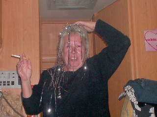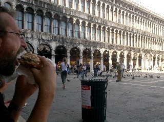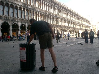 Peter erledigt den Abwasch, ab in die Tonne. Tolle Sache. Wieso machen andere immer so ein Geschiss mit ner Riesenfeier, denn unsre hier ist absolut auf uns zugeschnitten. Das Geschenk der Kinder haben wir von Sexten eigenmächtig nach hier verlegt. Anstatt Privatbadezimmer und Menü mit weißen Stoffservietten im Restaurant Patzenfeld gabs eine Gondelfahrt und Burger King-Menü "San Marco" - klasse.