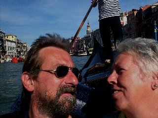 Und weil wir ja 25 gemeinsame Jahre durchwandert haben, lassen wir uns nun mal von einem Gondolieri durch die stinkenden Kanäle schippern. E bissi Luxus muss schon sein. Schee.