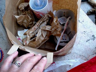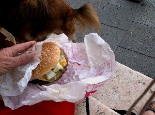 Und jetzt kommts Mittagsmenü, geliefert von Burger-King, und serviert auf blankem Marmor auf dem San Marco.