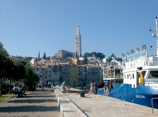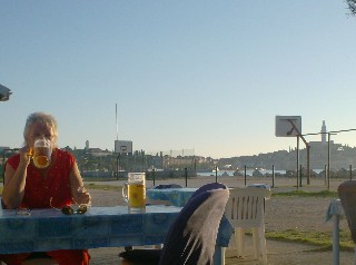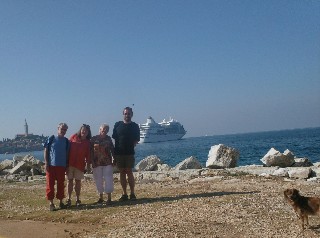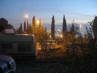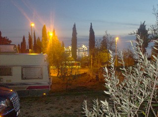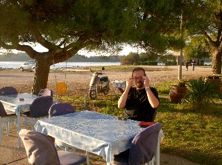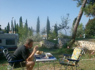Und die Autobahn ist eigentlich nur zweispurig und gar nicht teuer. So landen wir gegen 16:00, nach 5 Stunden und ca. 220 km, bei Kruses (wiebkes) auf dem Campingplatz. Einen Superplatz direkt am Wasser haben sie erwischt... schade, dass dort keine Hunde erlaubt sind, und der Nachbarplatz schon Winterpause hat. Notgedrungen checken wir auf dem von Wiebkes verschmähten gestrigen Platz ein, und sind dort aber sehr zufrieden: Fernsehempfang, Blick aufs Meer, und die Nähe zu Ravioli oder Rivinji, ich kann mir den Namen einfach nicht merken. Unten geht zwar die Küstenstraße vorbei, aber im Vergleich zu Würzburg oder Kassel richtig ruhig gelegen, und gegen Abend ist auch auf der Straße Ruhe.