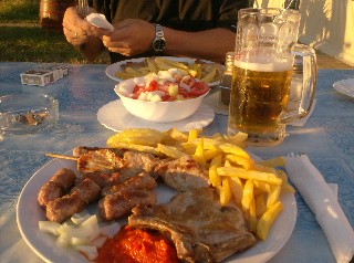 Aber nun lassen wir uns im Schein der Abendsonne das Bier und den Grillteller schmecken,