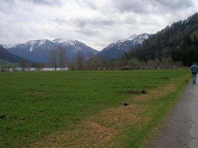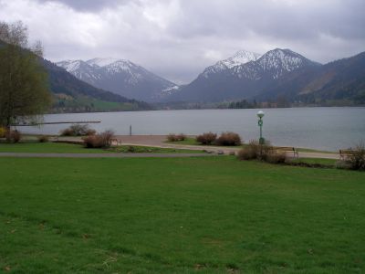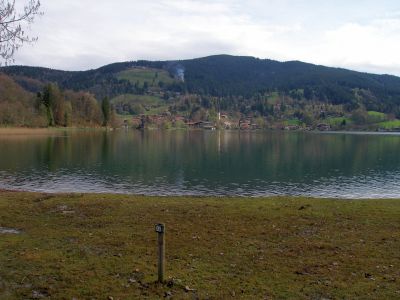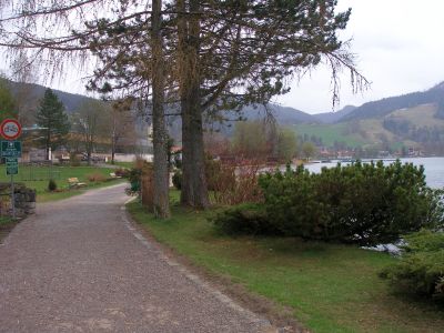 Es hat die ganze Nacht geregnet. Nun kommt ab und zu die Sonne raus, aber für einen Rundgang um den See fehlt uns der nötige Antrieb. Also machen wir nur nen halben Rundgang und gehen auf die andere Seeseite nach Schliersee Brötchen holen.