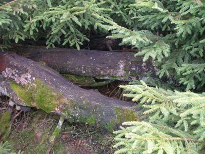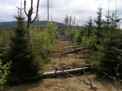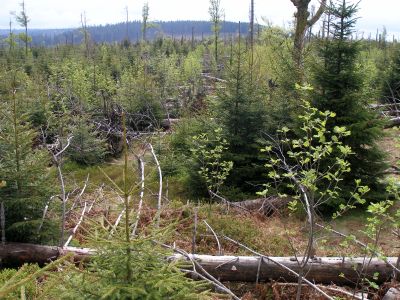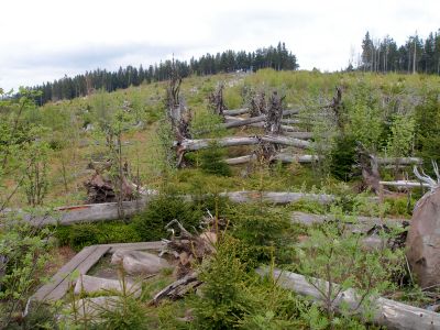 und man kann neben den langsam verrottenden Bäumen bereits das neue Leben erkennen.