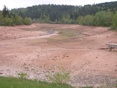 Dort wird allerdings im Moment nicht gestaut und der See ist leer. Der Stellplatz übrigens auch. Uns ists zu einsam, also weiter.