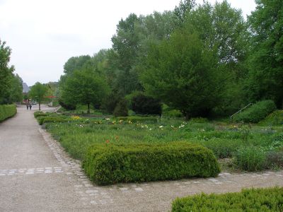 Der Platz liegt direkt an der stark befahrenen Durchgangsstraße und viele Treppen führen hinab in den Kurpark. Die müsste man hinterher auch wieder hoch. Nee, das ist nix für unsre alten Knochen und den kurzbeinigen Bruno. Wir machen eine Stadtrundfahrt und versuchen Richtung Bad Schönborn zu kommen.