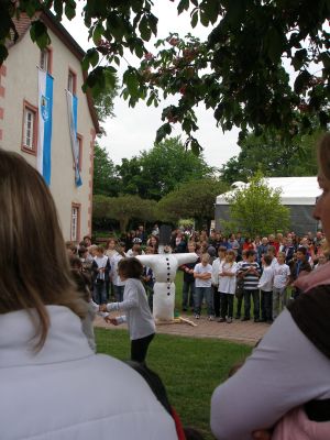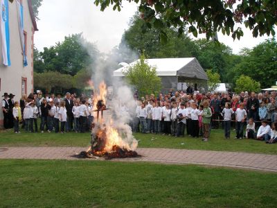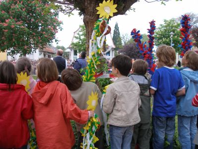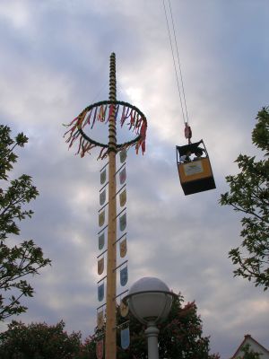 und kommen gerade pünktlich zur Maibaumaufstellung. Na passt doch.