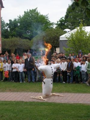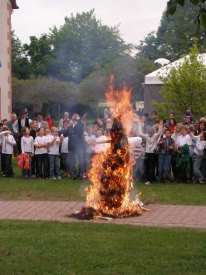 Nachdem sich alle gefreut haben wird der Winter verbrannt und mit einem Tänzchen der Frühling begrüßt.