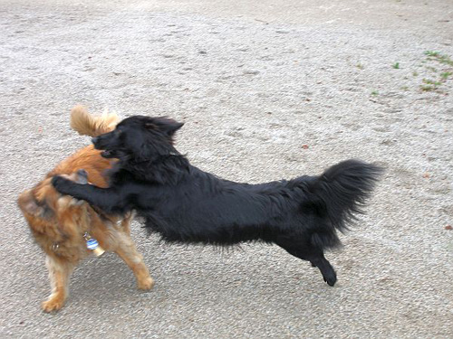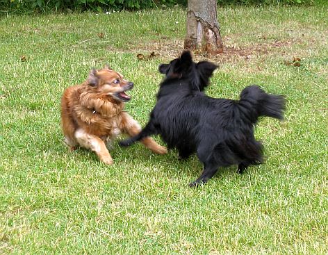 Mit der Leinenpflicht nehmens die Nachbarn nicht so genau und Bruno tobt wie ein