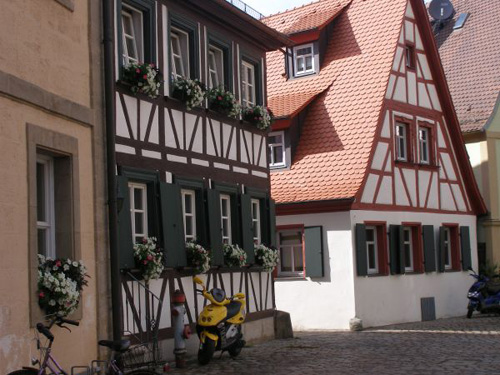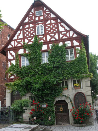 Nachdem die schwarzen Wolken verschwunden sind, machen wir uns auf den Weg in die Stadt. Es geht kurz an der Regnitz entlang, dann über eine Brücke über den Kanal und die Autobahn, und anschließend unter blühenden Linden durch, dann sind wir da.