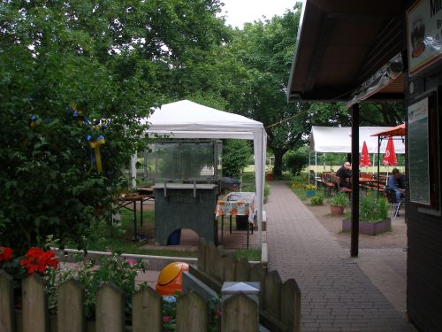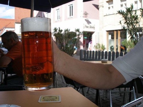 Die haben große Schirme draußen, und das Bier der Woche ist Annafestbier,