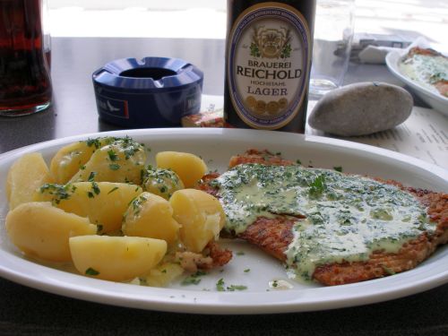 und haben Glück, dass es fränkischen Karpfen gibt. Lecker Kräutersößchen drüber und zur Einstimmung für morgen gibts Reichold-Bier dazu.