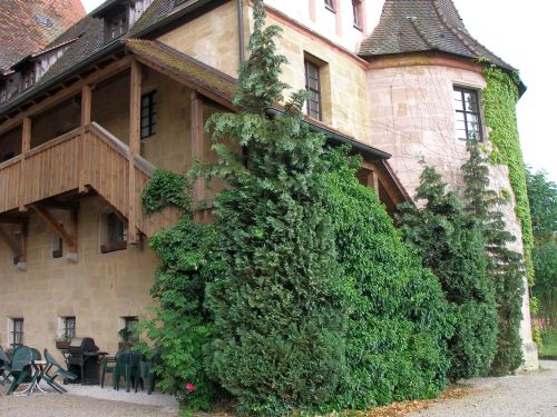 Erster Halt ist am Schloss Wiesenthau, das auch als Hochzeitsschloss gilt, denn im Schlosshotel kann man unter 6 verschiedenen historischen Räumen für die Feierlichkeiten wählen. Besichtigungen finden wohl nur Sonntag statt, und so begnügen wir uns mit der Umrundung und fahren weiter nach Schlaifhausen, wo wir am Ortsrand den Weg zum Parkplatz am Rand des Naturschutzgebietes Ehrenbürg (Walberla) finden.