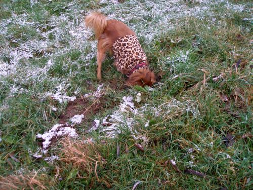 Und natürlich findet er trotz Schneedecke seine geliebten Maulwurfhügel.