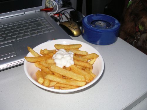 Südländer vorm Lidl verkauft mir noch 2 Portionen Pommes, und nun schnell
