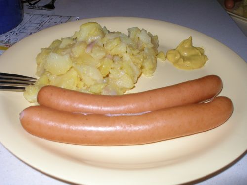 Zum Abendessen gibts selbstgemachten Kartoffelsalat und Wienerle,
