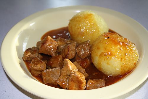 und für uns gibts Kartoffelbrei mit Hähnchenleber und Zwiebeln, wobei unsre Leber nicht mehr roh ist.