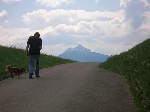 Heute ist ein Faulenzertag, d.h. wir pflegen unsren Muskelkater. Zwischendurch winken wir mal rüber zu Maxima auf dem Grünten, der auch heute weder Mütze noch sonstwas trägt. Ist ja auch viel zu heiß für ne Kopfbedeckung.