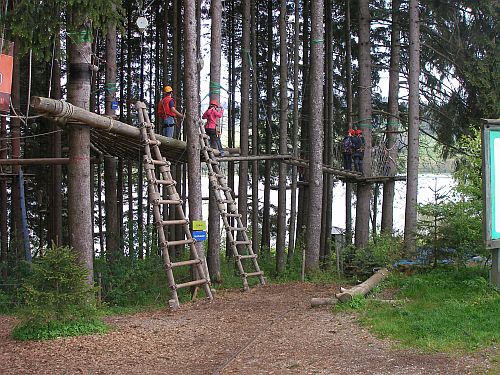 Nach einem kurzen Begrüßungsschwätzchen gehts weiter, und kurz drauf sind wir am Ziel unsrer Tour, dem Hochseilgarten.
