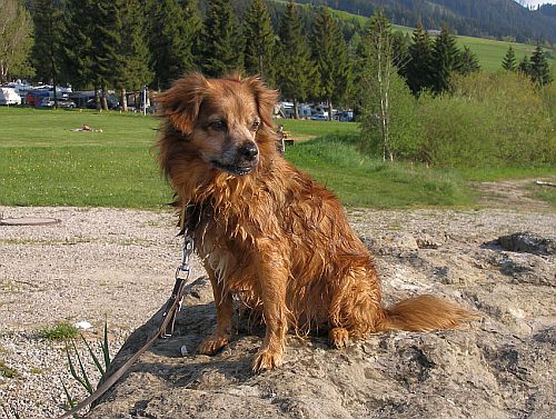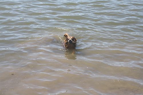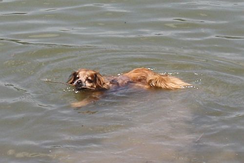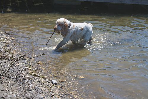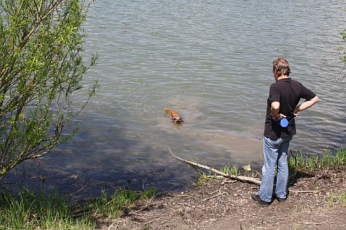 Bruno holt noch ein Stöckchen aus dem See, und dann ist Schluss mit den heutigen Aktivitäten und wir müssen ruhen.