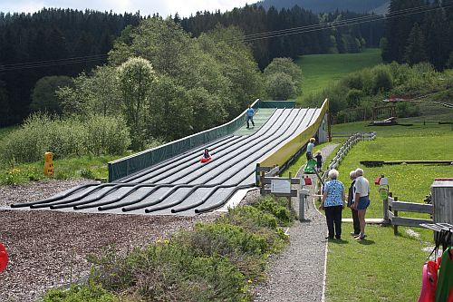 Da braucht Papa gewaltig Ausdauer, wenn er stundenlang den Bob immer wieder hoch tragen muss, damit Sohnemann mit Schmackes runterrutschen kann, und außerdem nen dicken Geldbeutel für die Reifenbahn. Scheint aber richtig Spaß zu machen.