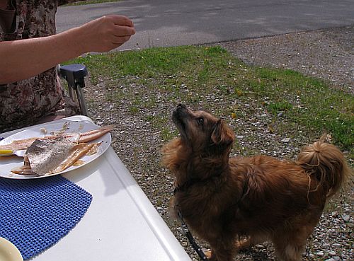 und für Bruno fallen natürlich auch paar Bröckchen ab. Er hat ja schließlich auch Urlaub und soll nicht leben wie ein Hund.