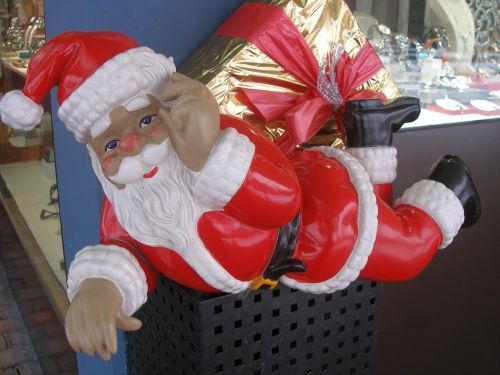 Dabei sehen wir diesen Weihnachtsmann, der wohl zu groß fürn Papierkorb ist,