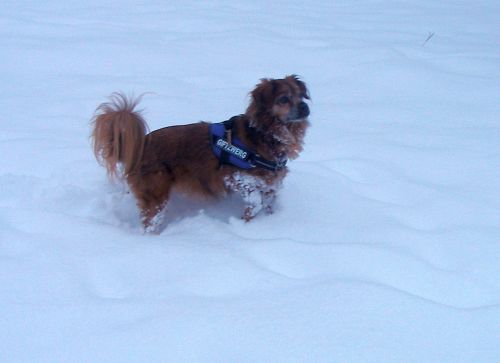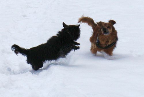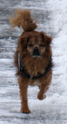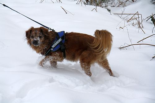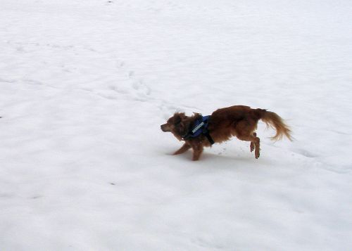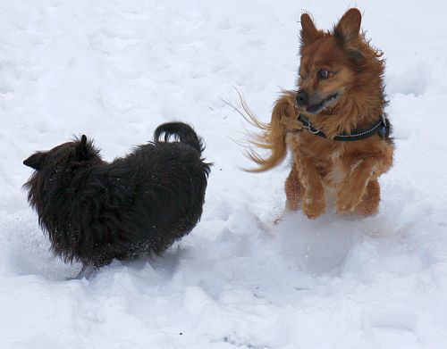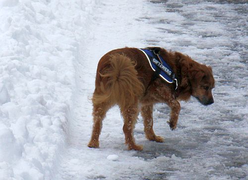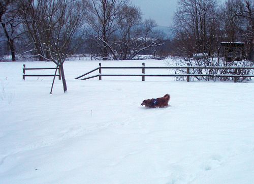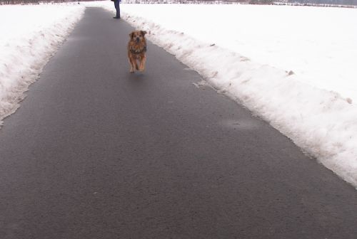 Bruno hoppelt wie ein Hase durch den Schnee und wetzt dann den Weg auf und ab.